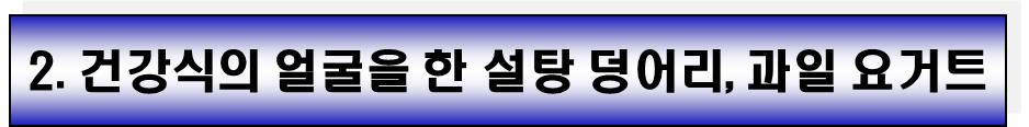 • 시중에 판매되는 대부분의 과일 요거트에는 과일 자체의 과당 외에도 맛을 내기 위한 설탕, 시럽, 액상과당이 다량 추가되어 있습니다.