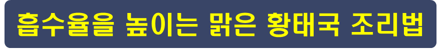 - 조리 팁: 처음부터 참기름에 볶기보다는 냄비에 물과 황태를 넣고 진한 뽀얀 국물이 나올 때까지 푹 끓여보세요.