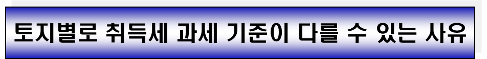 이처럼 토지별로 과세 기준이 다른 이유는 토지의 활용 목적, 취득 주체, 그리고 취득 경로의 특수성을 고려하여 조세 정책의 형평성과 합리성을 추구하기 위함입니다.