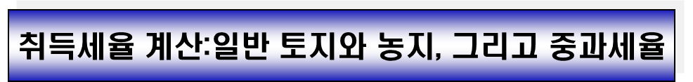 - 농지: 취득세 3% + 지방교육세 0.2% + 농어촌특별세 0.2% = 총 3.4%