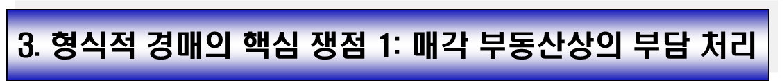 낙찰을 희망하는 입찰자에게 가장 중요한 쟁점은 매각 부동산상의 부담(저당권, 전세권 등)이 소멸되는지, 아니면 낙찰자에게 인수되는지 여부입니다.