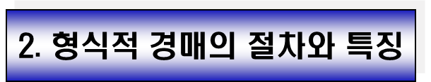 - 특징: 민사집행법의 강제집행 또는 담보권 실행 규정에 따라 진행되며, 경매 부동산 위의 부담(저당권 등)은 원칙적으로 매각으로 소멸됩니다.