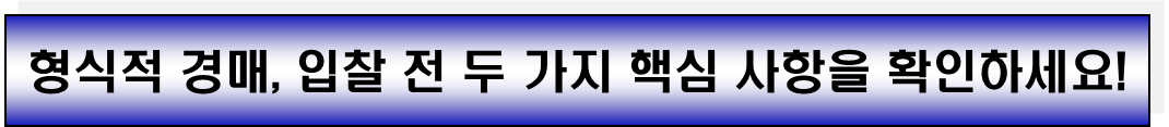 형식적 경매는 일반 경매와는 목적과 절차에 차이가 있으므로, 입찰자께서는 특히 다음 두 가지 사항을 사전에 철저히 확인하셔야 안전한 투자가 가능합니다.