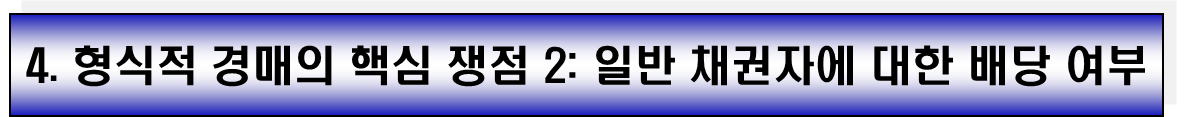 - 형식적 경매는 특정 재산의 가격보존 또는 정리를 주목적으로 하는 것인 만큼, 그 절차에서 원칙적으로 일반 채권자에 대한 배당은 허용하지 않는 것이 타당합니다.