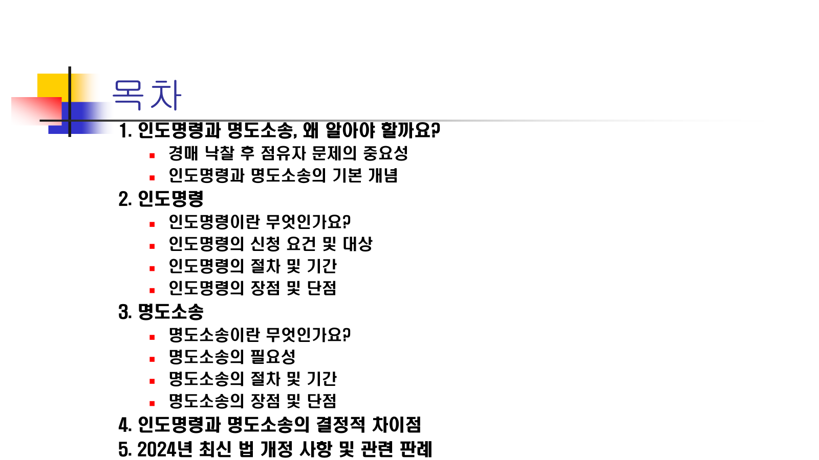 - 포괄적 적용: 인도명령의 대상이 아닌 모든 종류의 불법 점유자에게 적용할 수 있습니다.
