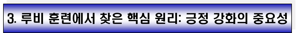 - 이렇게 '행동'과 '보상' 사이의 연결고리를 루비가 명확하게 인지할 수 있도록 도왔습니다.