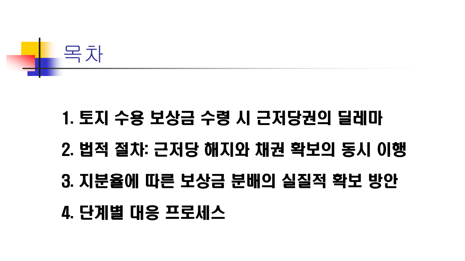 - 물상대위란?: 담보물(토지)이 수용되어 보상금으로 변했을 때, 그 보상금에 대해 근저당권의 효력을 주장하는 것입니다.