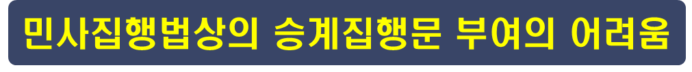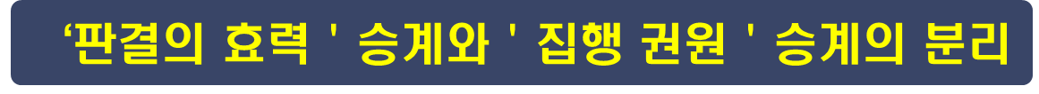 - 일반적인 강제집행(예: 돈을 갚으라는 판결)의 경우, 판결 당사자가 아닌 사람이 권리를 승계받았을 때에는 승계집행문을 부여받아 집행을 속행할 수 있습니다 (민사집행법 제31조).