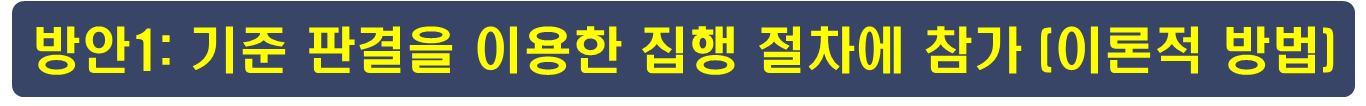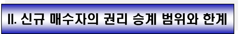 - 이론적으로 신규 매수자는 기존 판결 당사자의 지분을 매수했으므로 승계인에 해당되어, 법원에 지분 매수를 증명하는 서류(등기부 등본 등)를 제출하고 승계집행문을 신청할 수 있습니다.