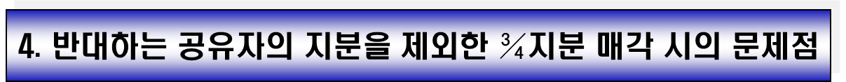 앞서 언급했듯이, 3/4 지분만을 매각하는 것도 가능은 하지만, 현실적으로 여러 가지 문제가 따릅니다. 이로 인해 토지 가치가 크게 하락할 수 있는데요.