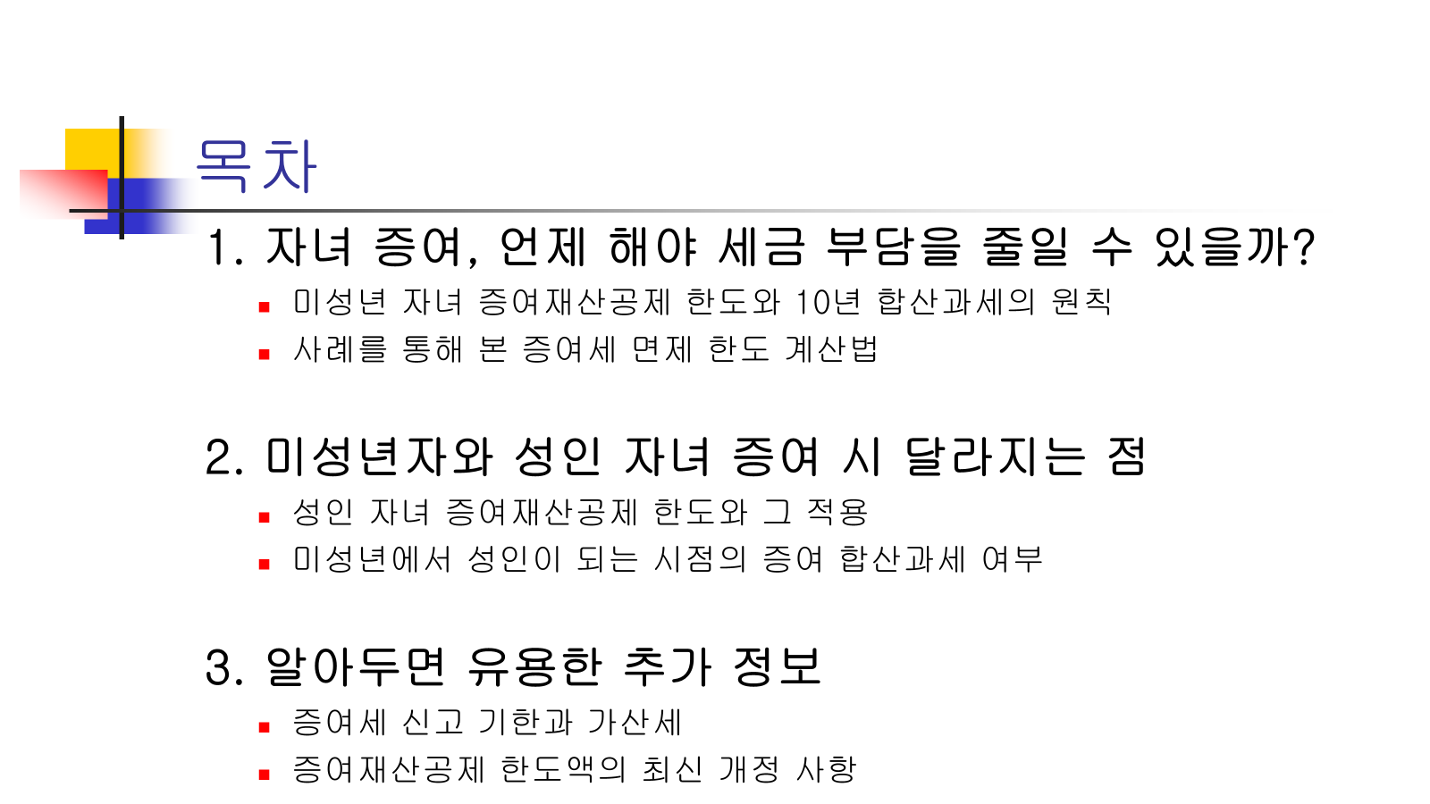 자녀가 미성년자에서 성인이 되는 시점은 증여 계획에 있어 아주 중요한 변수입니다. 증여재산공제 한도가 2,000만 원에서 5,000만 원으로 크게 늘어나기 때문이에요.