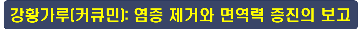 - 섭취 시 주의사항: 커큐민은 철분의 흡수를 방해할 수 있다는 보고가 있으므로, 평소 빈혈이 있는 분들은 강황을 과다하게 섭취하는 것에 대해 조심하시는 것이 필요합니다.