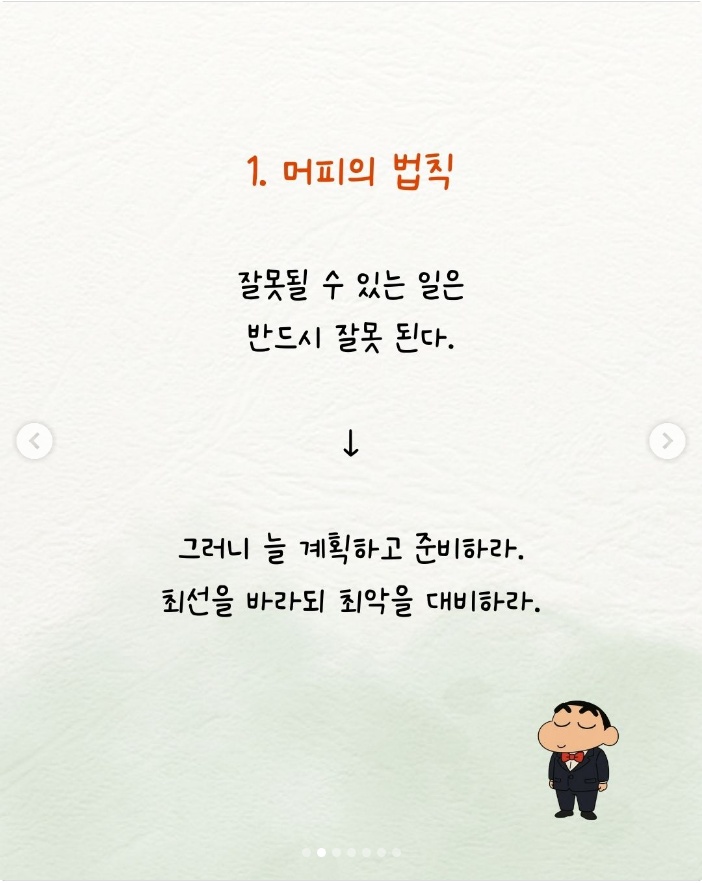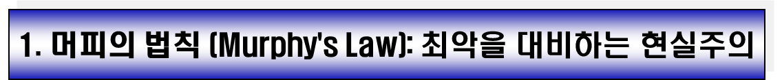 1949년 미국 공군에서 안전 장비 실험을 하던 에드워드 머피 대위의 이름에서 유래되었습니다. (부품을 장착하는 여러 방법 중 잘못된 방법이 있다면, 누군가는 반드시 그 방법을 사용한다는 취지에서 시작되었다고 합니다.)