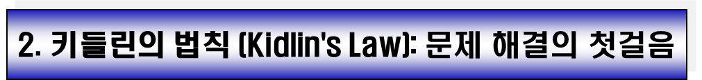 키들린의 법칙은 유명 작가 **제임스 클라벨(James Clavell)**의 소설에 등장하는 가상의 인물'키들린(Kidlin)'이 문제 해결에 사용했던 기법에서 유래되었다는 설입니다.