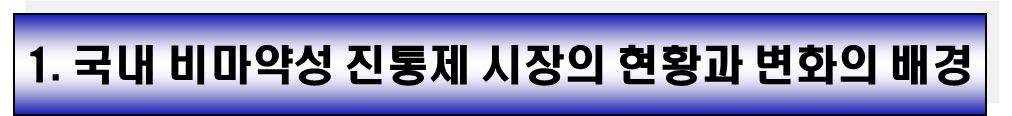 국내 비마약성 진통제 시장은 현재 약 800억원 규모로 형성되어 있습니다. 수치상으로는 그리 크지 않아 보일 수 있지만, 그 내면을 들여다보면 성장 잠재력이 무궁무진하다는 것을 알 수 있어요.
