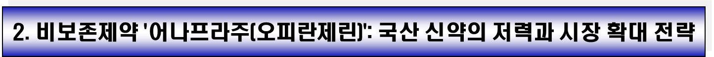 비보존제약은 지난해 10월, 제38호 국산 신약인 '어나프라주'를 출시하며 이 시장의 개척자로 나섰습니다. 어나프라주는 수술 후 통증 치료에 특화된 혁신적인 약물로 평가받고 있습니다.