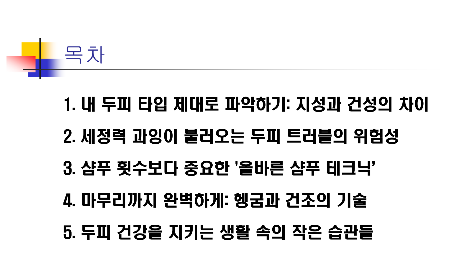 - 최근에는 두피의 pH 농도와 유사한 약산성 샴푸나 식물 유래 성분인 아미노산계 세정제가 권장됩니다.