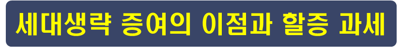 - 이점: 부모에게 증여할 때 한 번, 다시 부모가 자녀에게 증여할 때 또 한 번 내야 할 세금을 한 번으로 줄이는 효과가 있습니다.