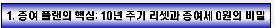 이러한 한도는 **10년을 주기로 재설정(리셋)**됩니다. 이 '10년 주기'가 조기 증여의 비밀이 되는 것입니다.