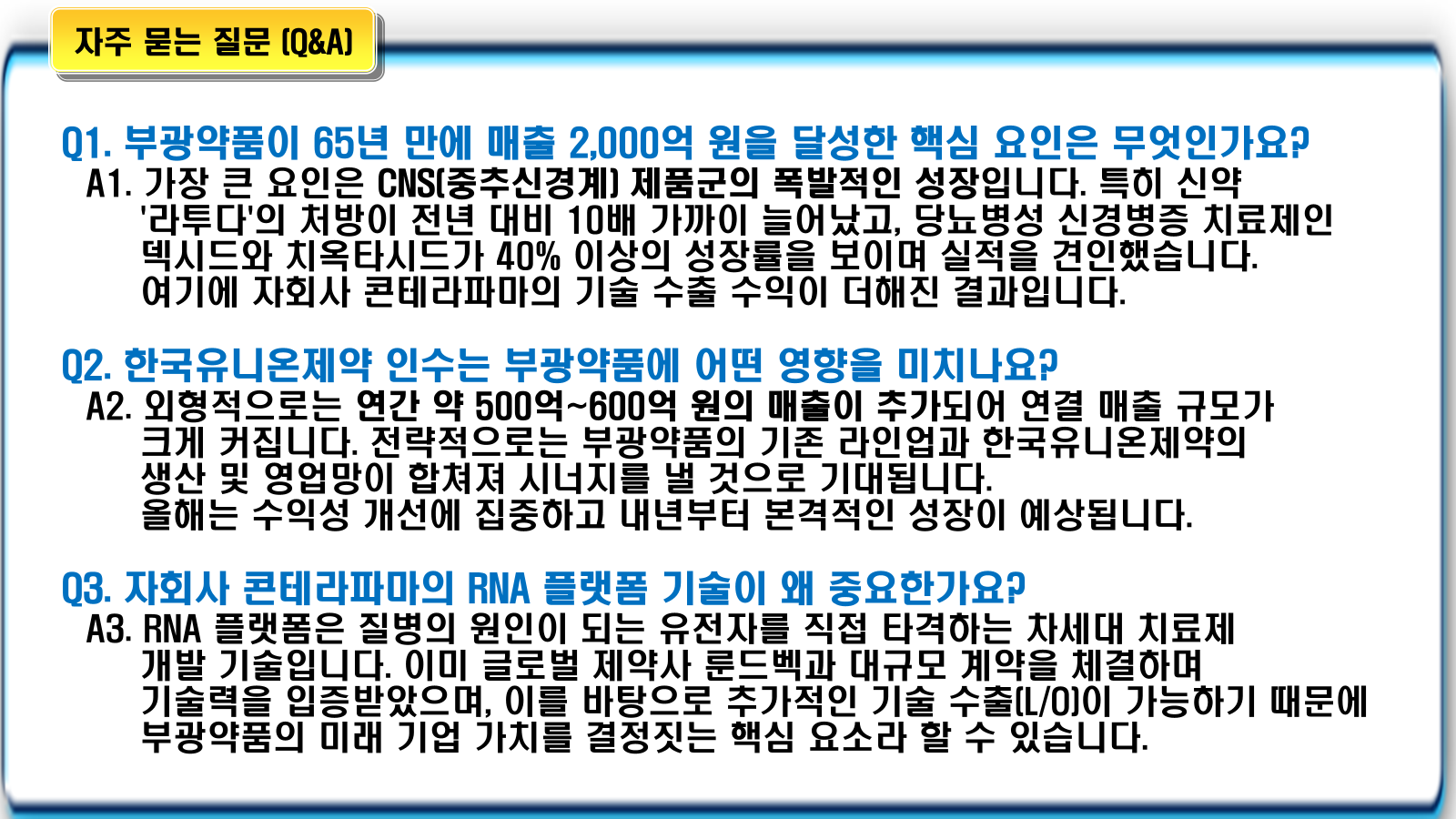- 룬드벡 사례 이후 글로벌 시장의 관심이 높아진 만큼, 추가적인 대규모 계약 가능성이 열려 있습니다.