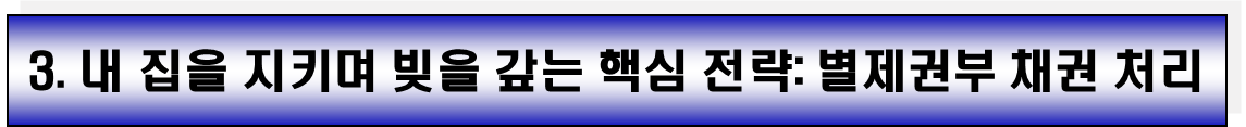 경매를 멈추는 것이 1차 목표였다면, 이제 2차 목표는 개인회생 절차 안에서 이 집을 지켜내는 것입니다. 담보가 설정된 채무(주택담보대출 등)는 별제권부 채권으로 분류되며, 이는 일반 신용 채무와는 다르게 처리돼요.