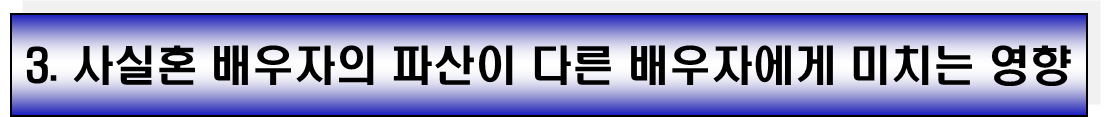 - 파산 절차는 채무자 개인에게만 적용되는 것이 원칙이므로, 사실혼 관계인 남편에게는 직접적인 법적 효력이 미치지 않습니다. 남편의 재산이나 신용 상태에는 영향을 주지 않습니다.