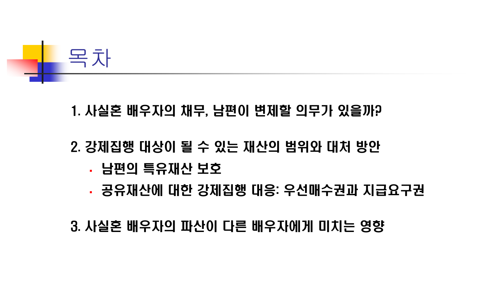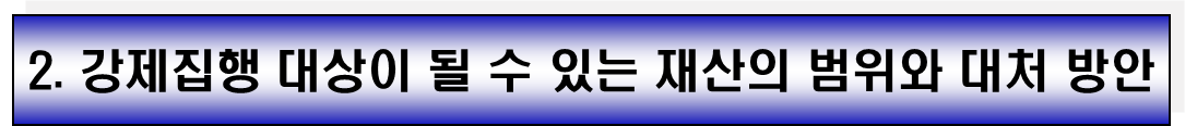 - 채무자(아내)가 점유하거나, 배우자(남편)와 공동으로 점유하고 있는 유체 동산은 강제집행 대상이 될 수 있습니다. 이는 채권자의 입장에서는 누가 소유자인지 명확히 알기 어렵기 때문입니다.
