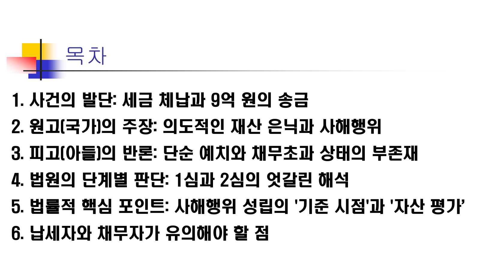 오늘은 세금 체납 상황에서 발생한 9억 원 증여 사건의 전말을 통해, 사해행위 취소 소송에서 승패를 가르는 결정적 요인이 무엇인지 심층적으로 분석해 보겠습니다. 실무적으로도 매우 중요한 판례이므로 내용을 끝까지 확인해 보시기 바랍니다.