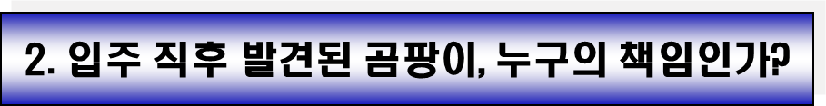 - 겨울철 입주 직후 확인한 상태에서 이미 내부가 곰팡이로 뒤덮여 있었다면, 이는 전 세입자가 사용하며 발생한 문제이거나 임대인이 관리하지 않은 결과로 보아야 합니다.