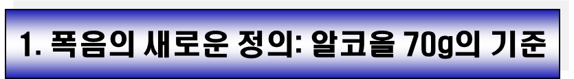 • 남성: 단시간 내 알코올 70g 이상 섭취 시 폭음으로 간주합니다.