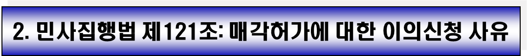 이러한 자료를 바탕으로 반드시 **매각결정기일(낙찰 후 7일 이내)**에 '매각허가에 대한 이의신청서'를 법원에 제출해야 합니다. 만약 이 시기를 놓쳐 매각허가결정이 확정되었다면, 대금 납부 전까지 '매각허가결정 취소신청'이라는 절차를 밟아야 하는데 이는 이의신청보다 훨씬 입증이 까다롭고 받아들여질 확률도 낮아집니다.