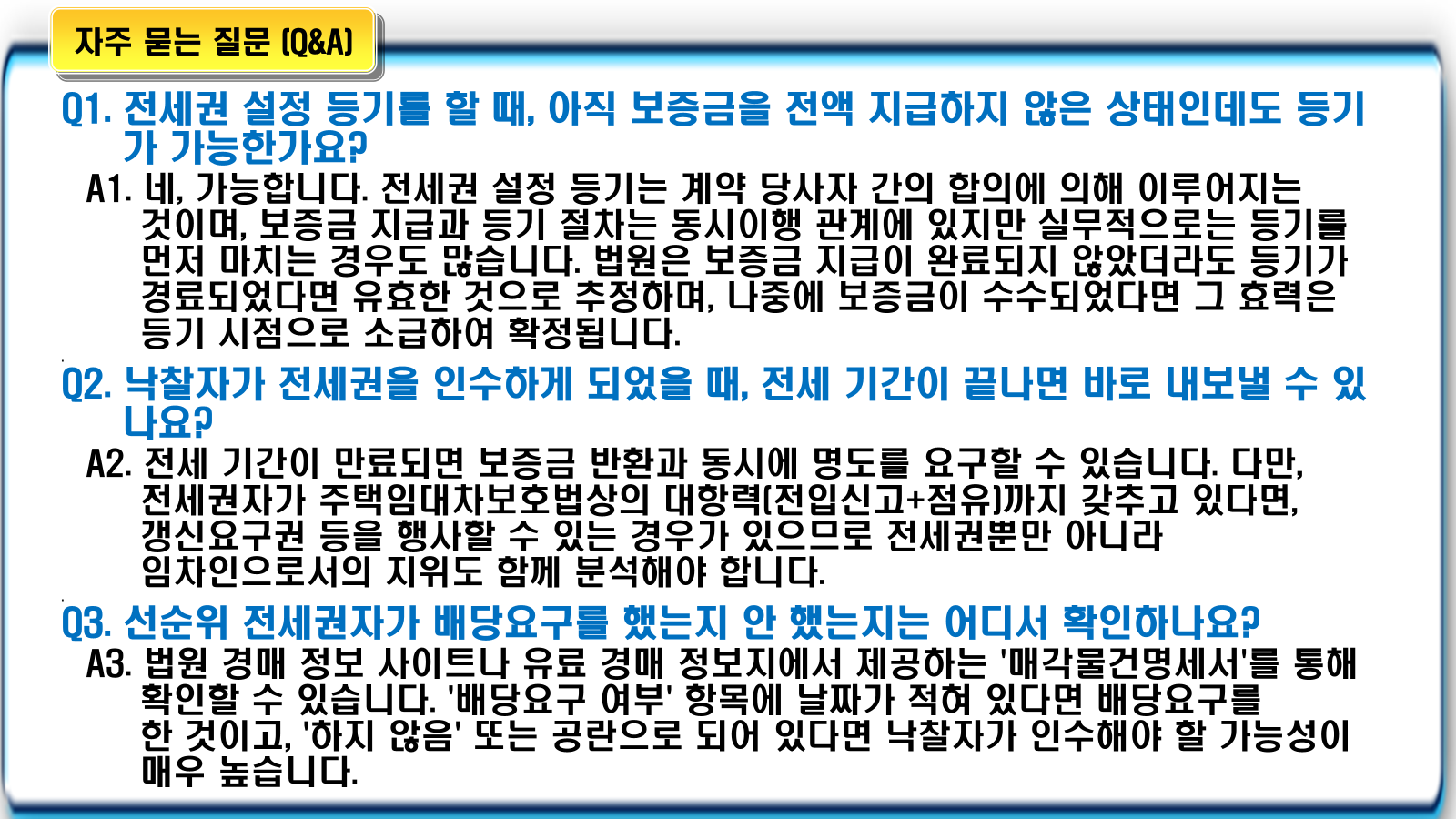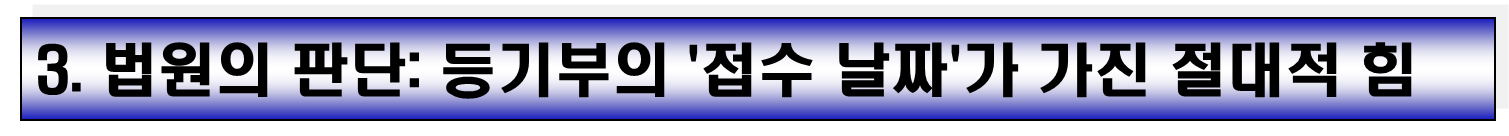 - 많은 이들이 계약서상의 기간을 중요하게 생각하지만, 법적 우선순위를 결정하는 것은 오직 **'등기 접수일'**입니다.