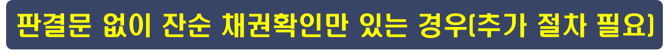 만약 소송 판결이 아닌 다른 방법으로 채권만 확인된 상태라면, 강제집행을 위한 집행권원을 얻기 위해 지급명령 신청, 본안 소송 등 추가적인 법적 절차를 진행해야 합니다.