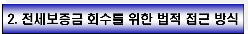 - 경매 절차 진행 및 보증금 배당: 집행권원을 바탕으로 경매를 진행하여 매각 대금에서 보증금을 배당받습니다