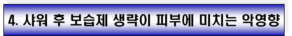 피부에 남은 물기는 곧바로 증발하면서 피부 속 수분까지 함께 끌어당겨 건조함을 가속화시킵니다(증발 냉각 현상). 따라서 굳이 수건으로 피부 물기를 완벽하게 제거할 필요는 없으며, 피부에 물기가 살짝 남아있을 때 보습제를 바르는 것이 오히려 수분 잠금 효과를 높일 수 있습니다. 보습제는 피부 표면에 보호막을 형성하여 방금 샤워를 통해 얻은 수분과 기존의 유분이 날아가지 않도록 잡아주는 역할을 합니다.