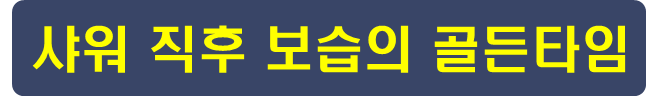 간단한 샤워 후 피부에 남은 물기는 수건으로 살포시 두드려 닦아내는 것이 좋습니다. 피부에 자극을 주지 않도록 문지르지 않고 물기만 제거하는 것이 중요해요. 그 다음 순서로 피부 보습제를 발라야 합니다. 샤워 후 보습제 바르기까지의 과정이 모두 '피부 관리 루틴'의 일부라고 생각하고 반드시 지키도록 노력하세요. 로션은 물기를 닦아낸 '즉시' 발라야 합니다. 이 시간이 바로 피부 건조증이 심해지는 것을 막는 골든타임이기 때문이죠.