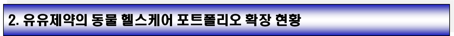 유유제약의 행보는 일시적인 유행을 따르는 것이 아닙니다. 지난 2년간 차근차근 구축해 온 동물 관련 포트폴리오는 매우 체계적이고 전문적입니다.