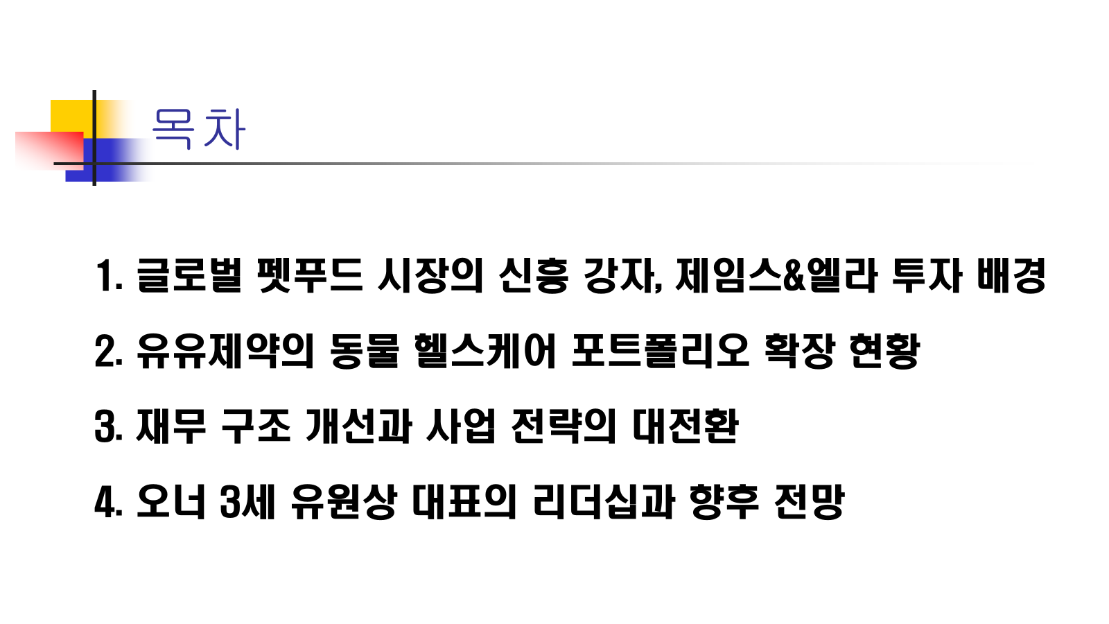 - 현재는 수익성 개선과 동물 헬스케어 진입에 집중하고 있지만, 장기적으로는 기존 인체 의약품 사업과의 시너지를 어떻게 낼 것인가가 관건입니다.