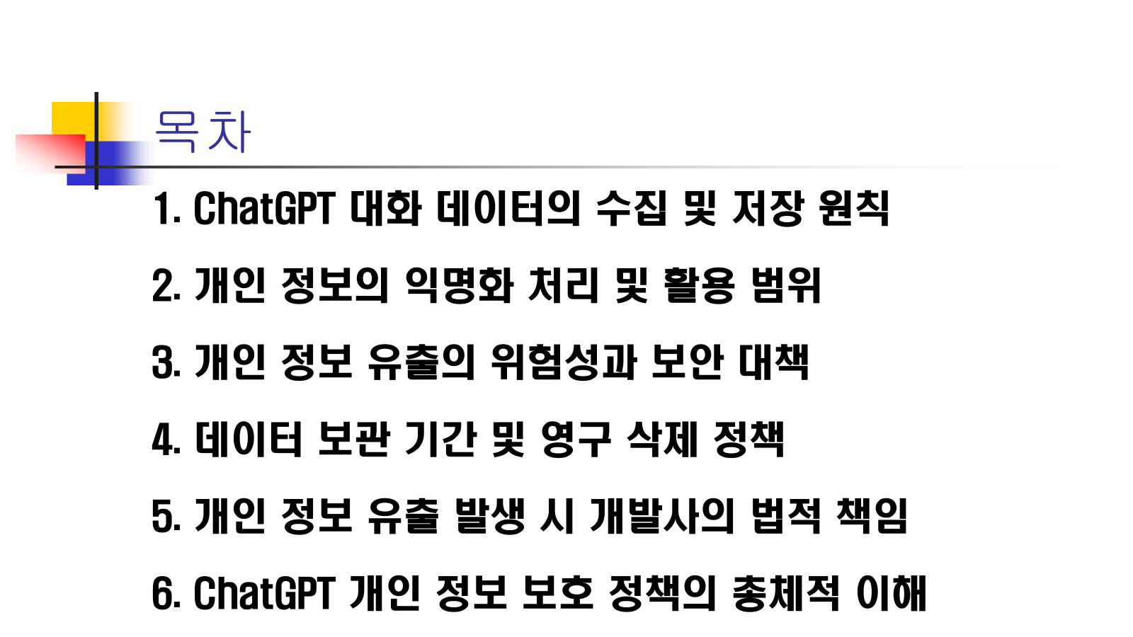 ChatGPT 개발사는 원칙적으로 데이터의 수집 목적을 명확히 하고, 해당 목적을 달성하는 데 필요한 최소한의 기간 동안만 데이터를 보관하는 것을 목표로 합니다.