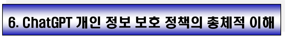 ChatGPT 개발사는 **개인 정보 보호 정책(Privacy Policy)**을 통해 대화 데이터를 얼마나 오랫동안 보관할 것인지 명확하게 고지합니다.